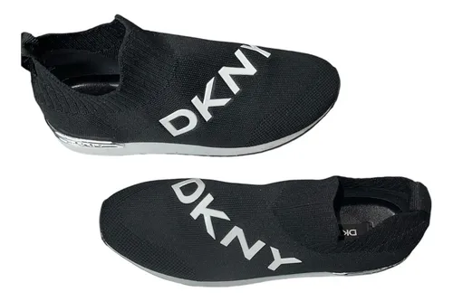 DKNY May Logo-Print Slip-On Mesh Trainers are designed for the modern, city-ready lifestyle, offering a blend of comfort and bold style. The trainers feature a flexible knit upper that hugs the foot for a secure, comfortable fit and a bouncy rubber sole that provides cushioning for all-day wear. The iconic DKNY logo is prominently displayed, making a clear fashion statement. This lightweight, slip-on design is perfect for those who need a shoe that is easy to wear without sacrificing a sleek, contemporary look.